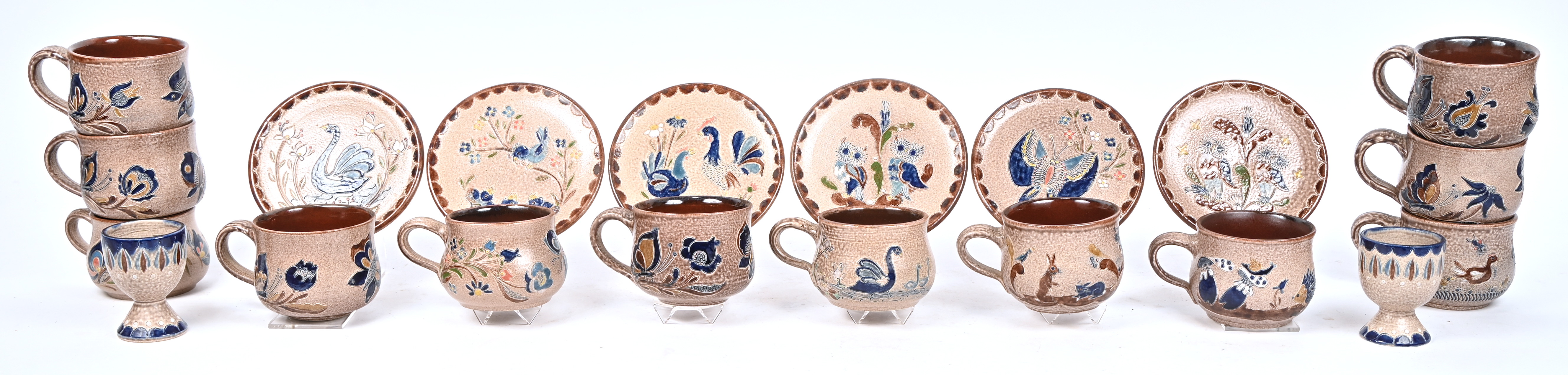 A large lot of beer steins without lids made of Westerwald earthenware. -