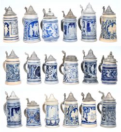 A large lot of small Westerwald beer steins. -