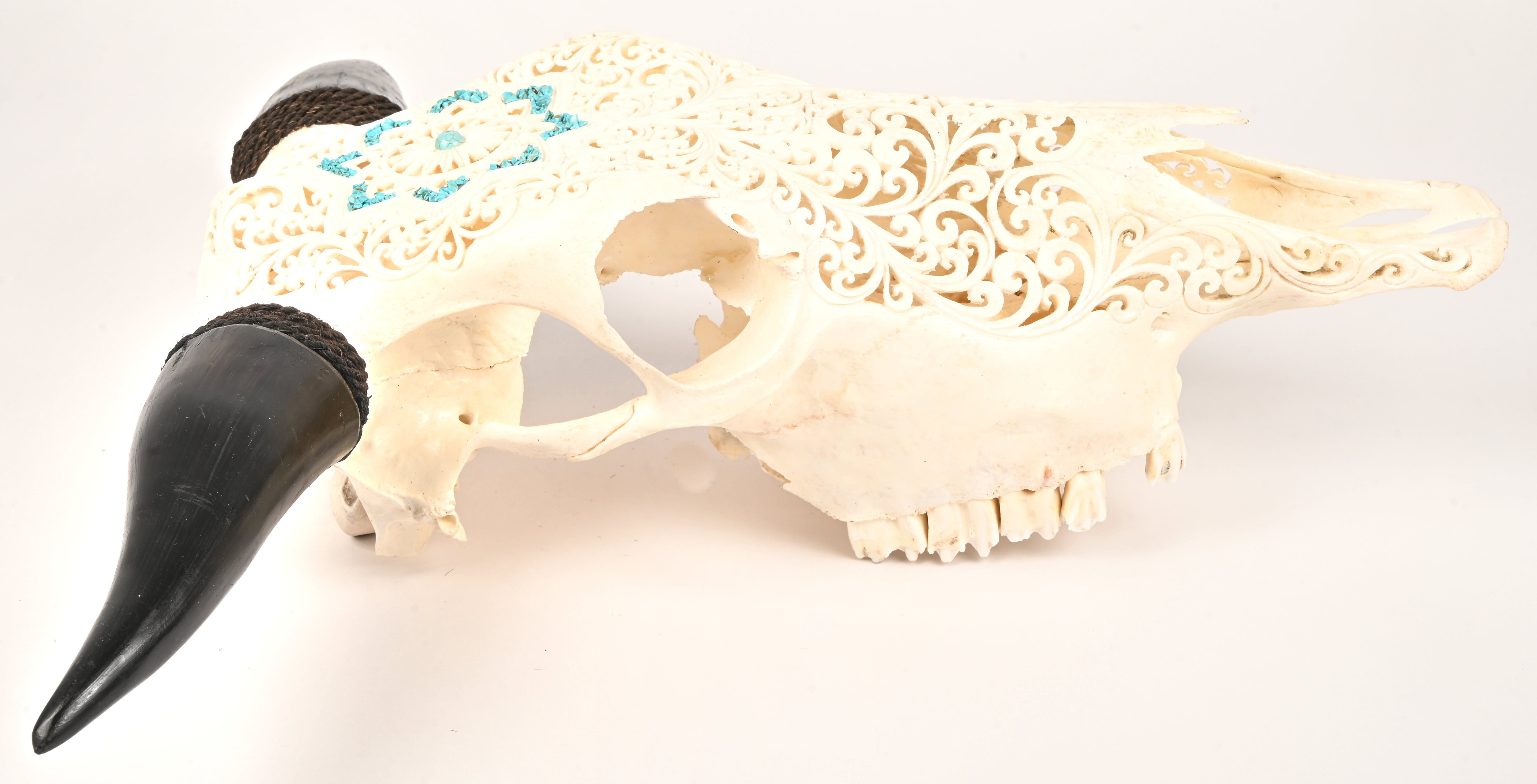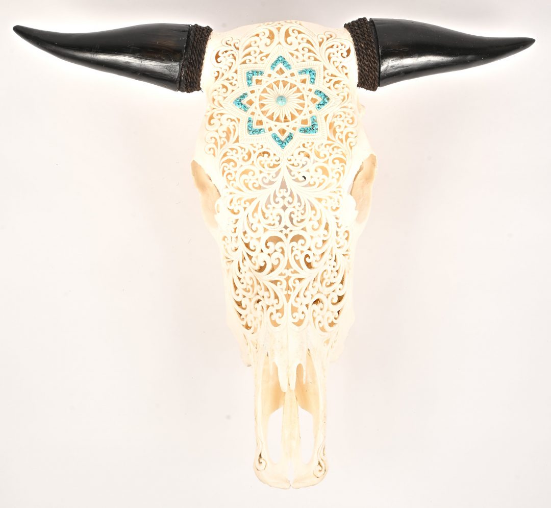 ‘Edeldame met verenhoed’, een buste van gepatinneerd brons. Getekend R. Gregoire.