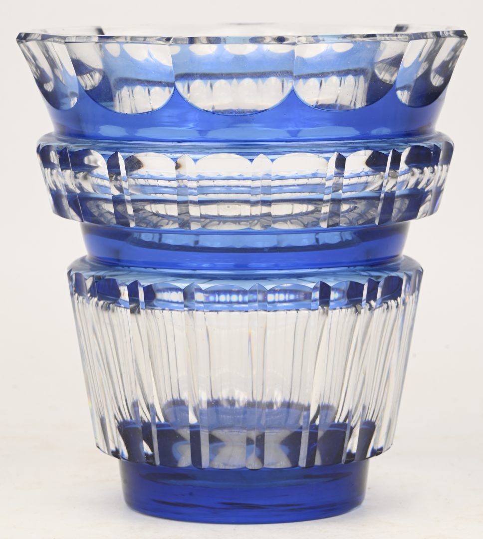 A pair of crystal candlesticks in art deco style. Unmarked.No longer availableDim. Hoogte 30 cmEstimate: € 50 / 70 -