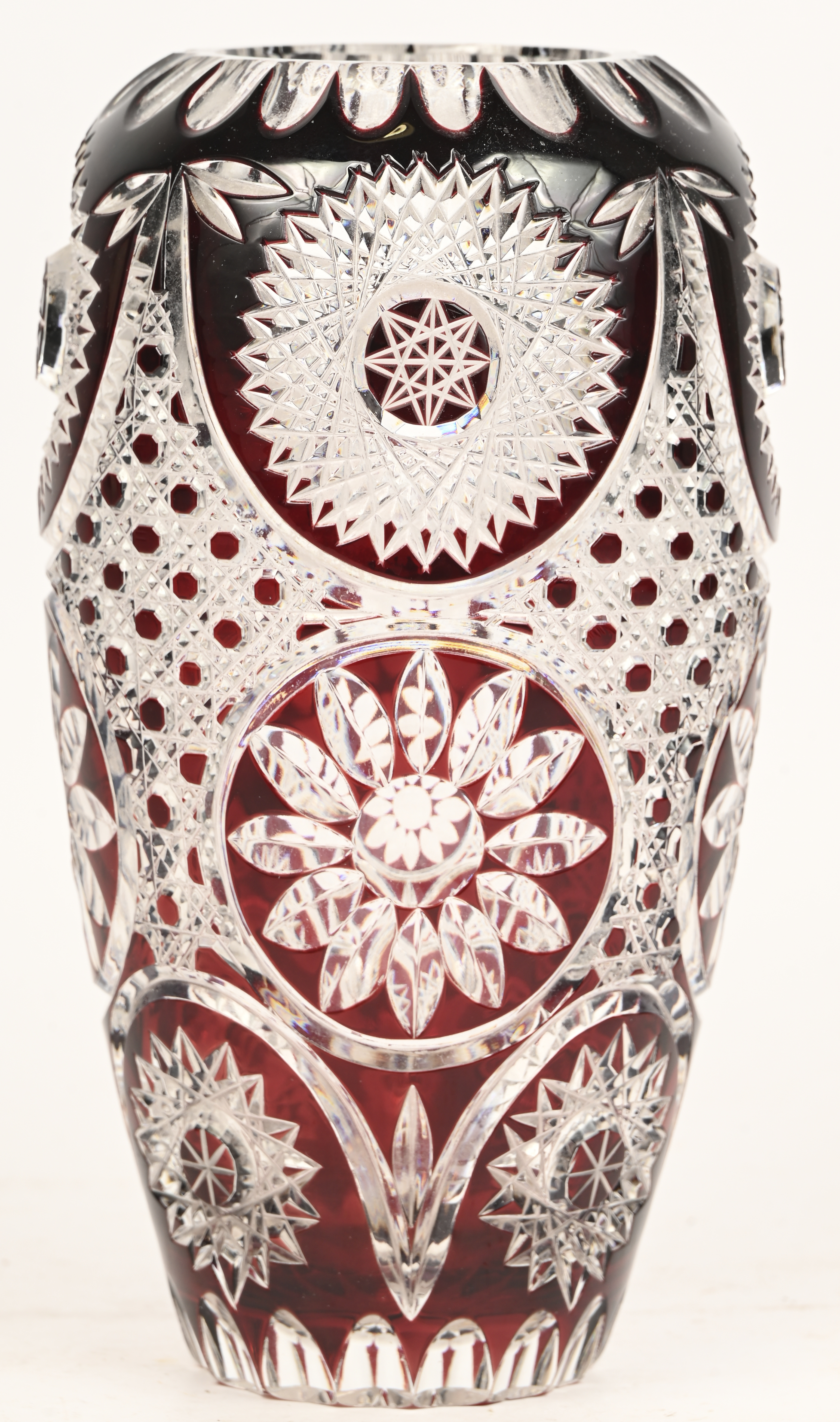 A large vase in cut crystal. Colorless. -