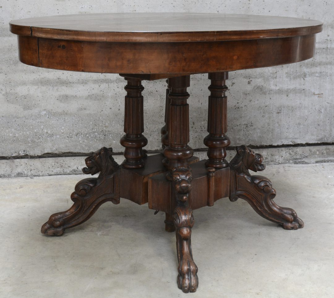 A round Art Deco coffee table with glass top. -