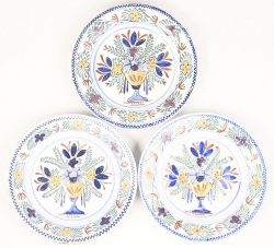 #233Drie borden van meerkleurig geglazuurd aardewerk, gemerkt APK.