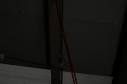 A set of copper wall lamps with glass sconces, some screws missing. -