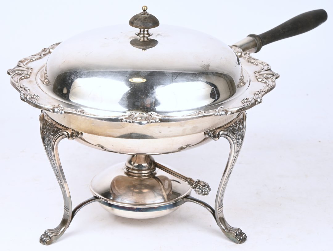 #131ChristofleEen verzilverd metalen koffie- en theestel op dienblad, gemerkt Christofle, coll. Gallia. Pin van een scharnier manco.