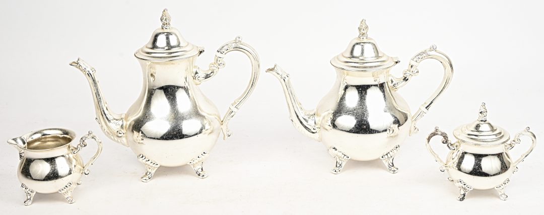 #117Christofle FranceEen vierdelig koffie-en theeservies van verzilverd metaal. Gemerkt.
