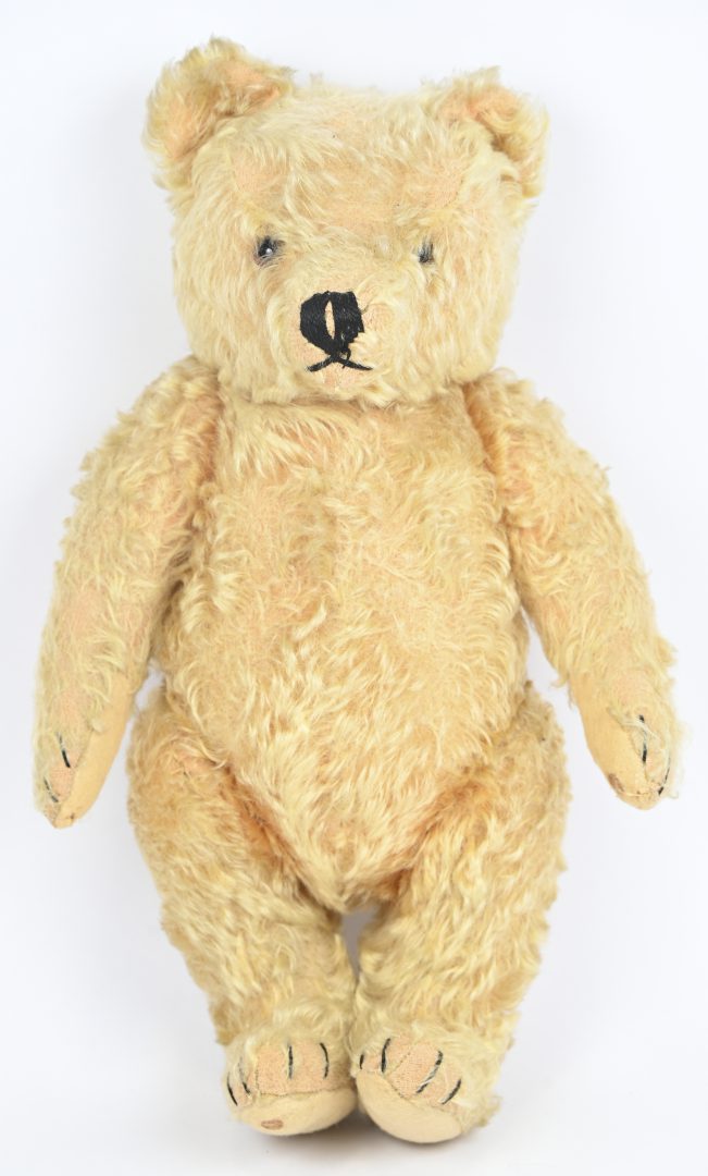 Een vintage beer van gele mohair. In goede maar bespeelde staat.