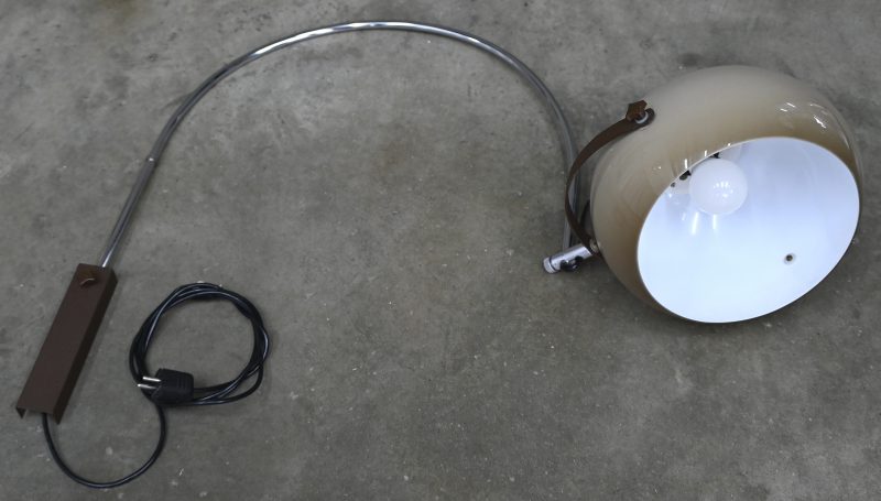 A vintage chrome-plated metal chandelier, 3 light points, Gaetano Sciolari. From the mid-1960s.No longer availableDim. Hoogte 51.5, Ø 30 cmEstimate: € 80 / 100 -