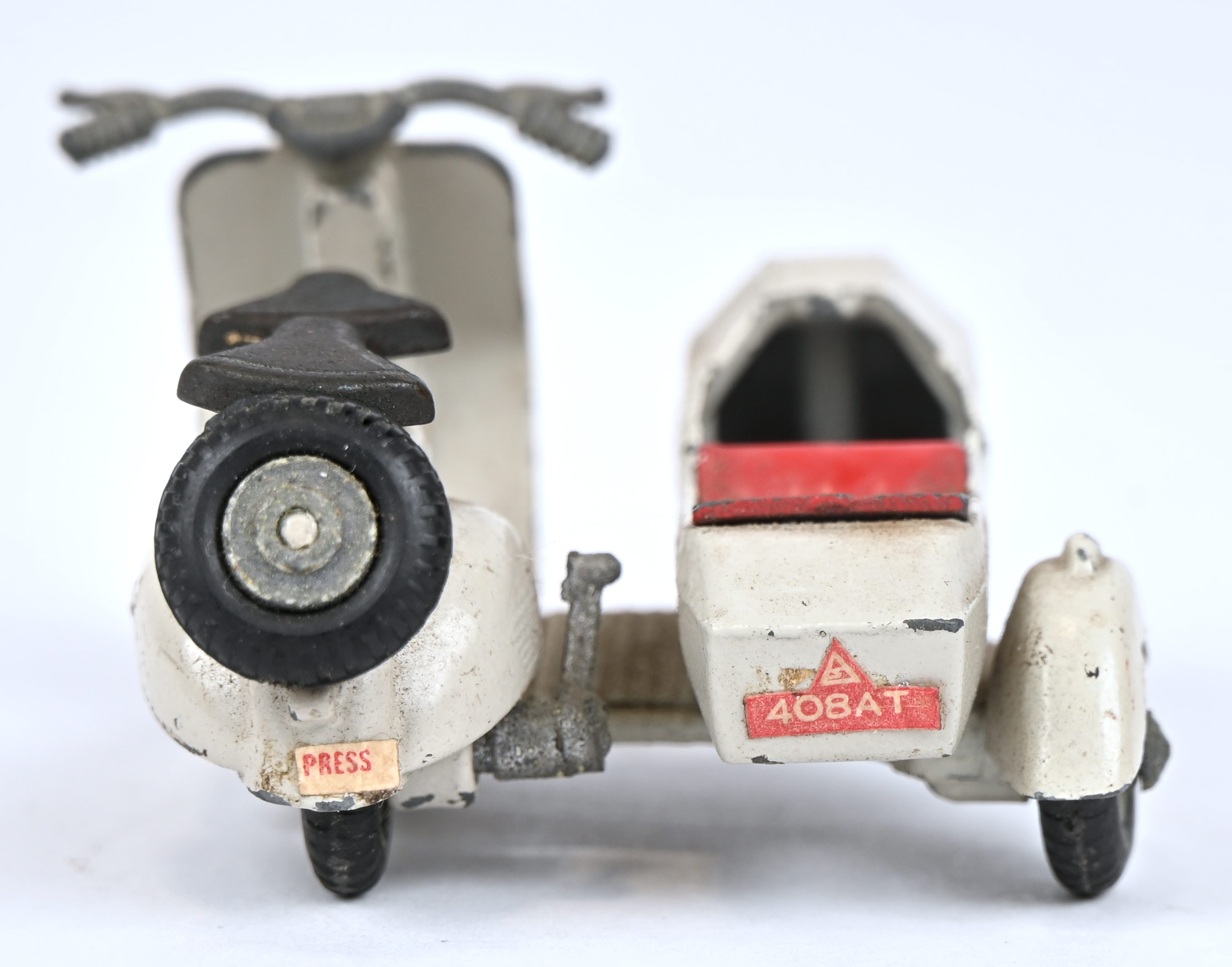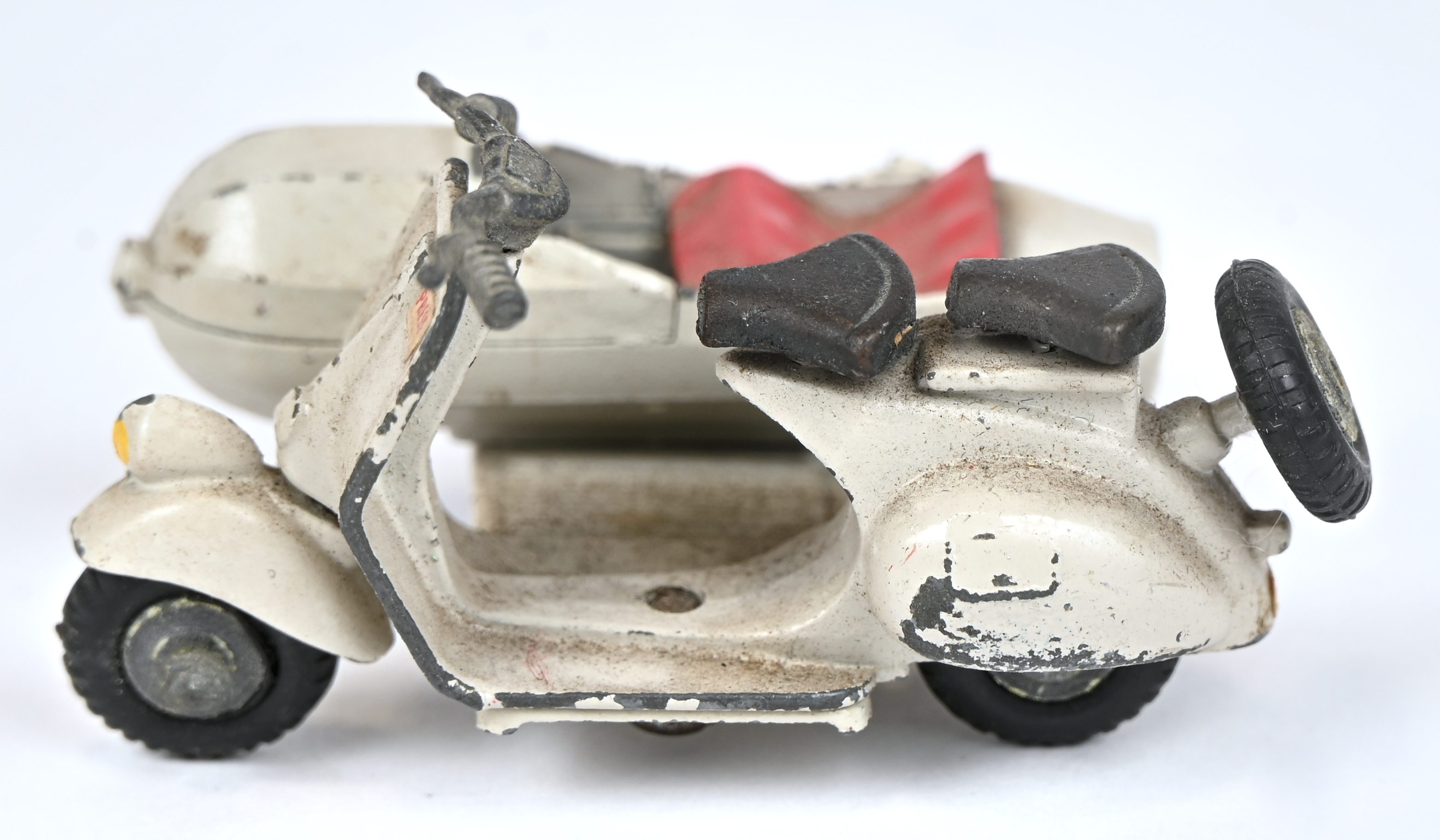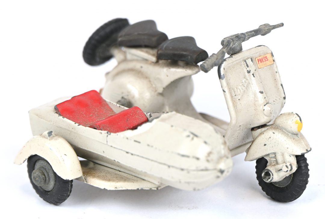 Een vintage die-cast Vespa de luxe 125 met sidecar, model 443.