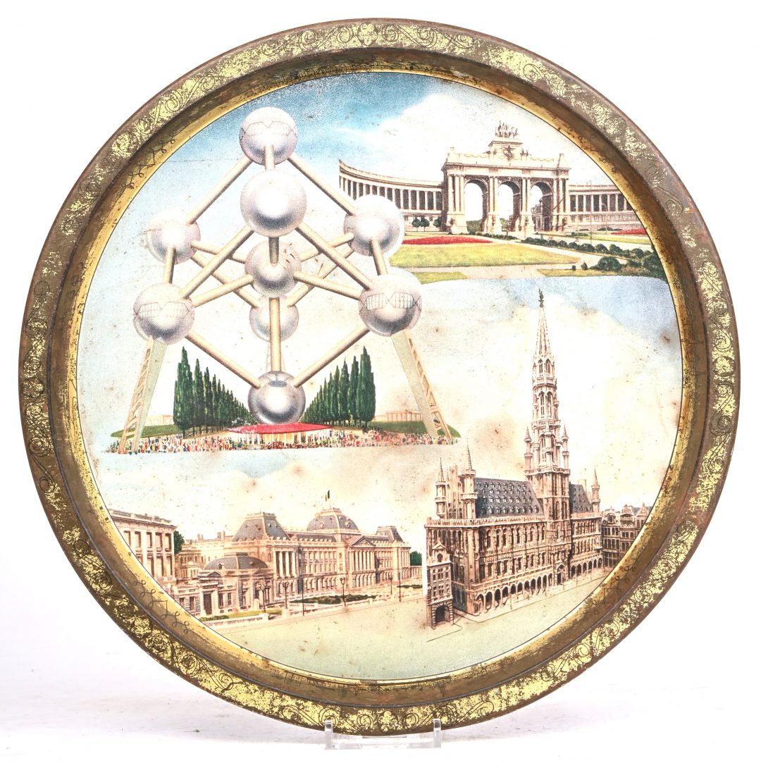 A vintage tray featuring sights of Brussels.