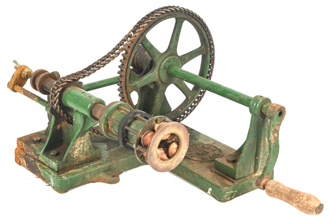 #87Een antieke wereldbol op gietijzeren voet gedecoreerd met leeuwenkoppen en opschrift: Institut national de geographie globe terrestre de 1 metre de circonference Bruxelles.