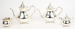 #201CharellEen vierdelig koffie en theestel van verzilverd metaal. In Georgian stijl. Gemerkt.
