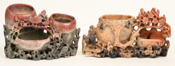 #578Een set van twee spekstenen vaasjes met twee en drie niveaus.