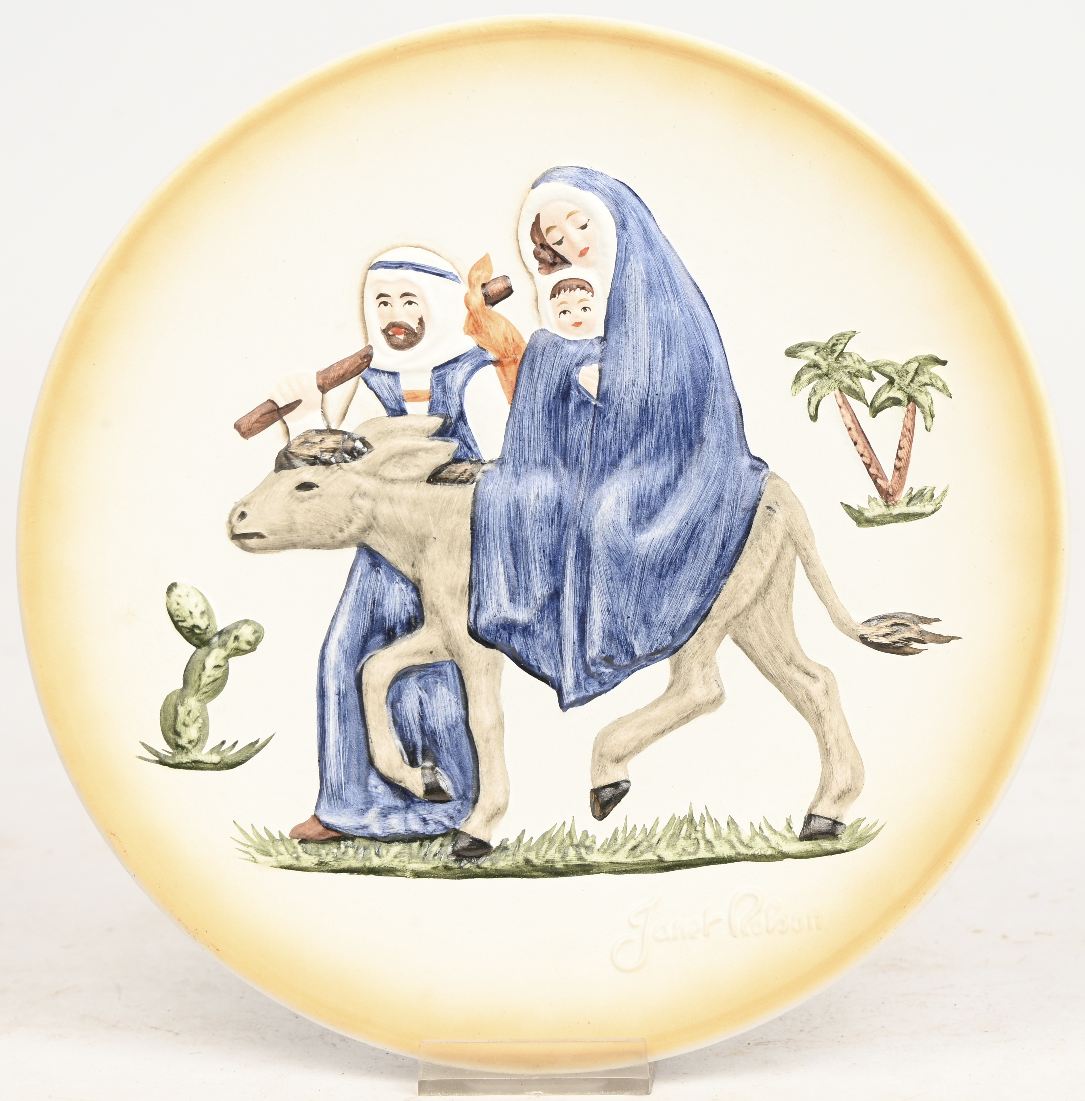 A vintage hand-painted plate, Flight into Egypt, Janet Rolson for Goebel. 1974.