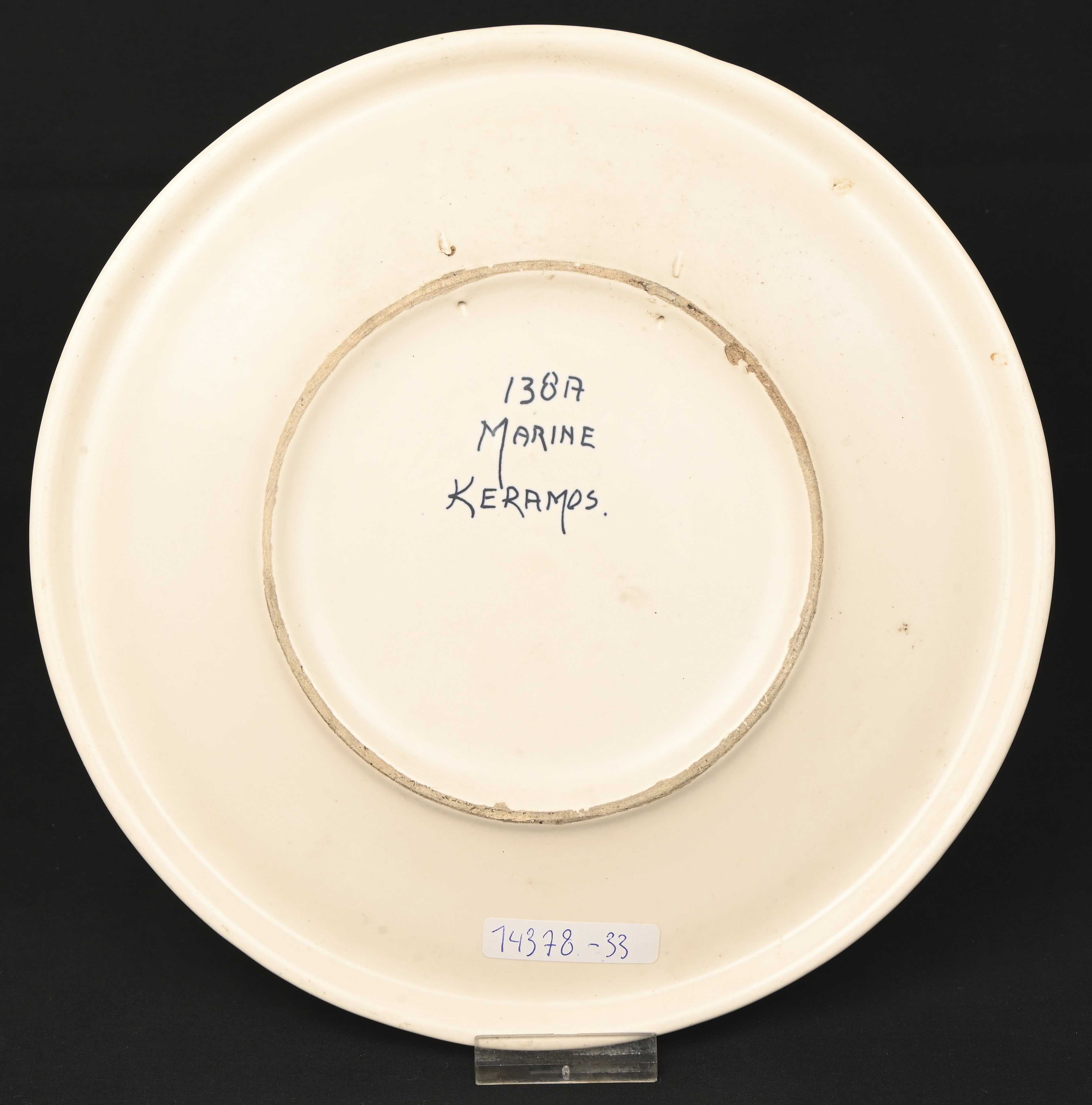 #5Vijf borden, een grote schotel en een klein schaaltje. Van blauw wit geglazuurd aardewerk. Deels Doornik.