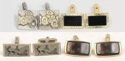 Four pairs of cufflinks with various decorative embellishments. -