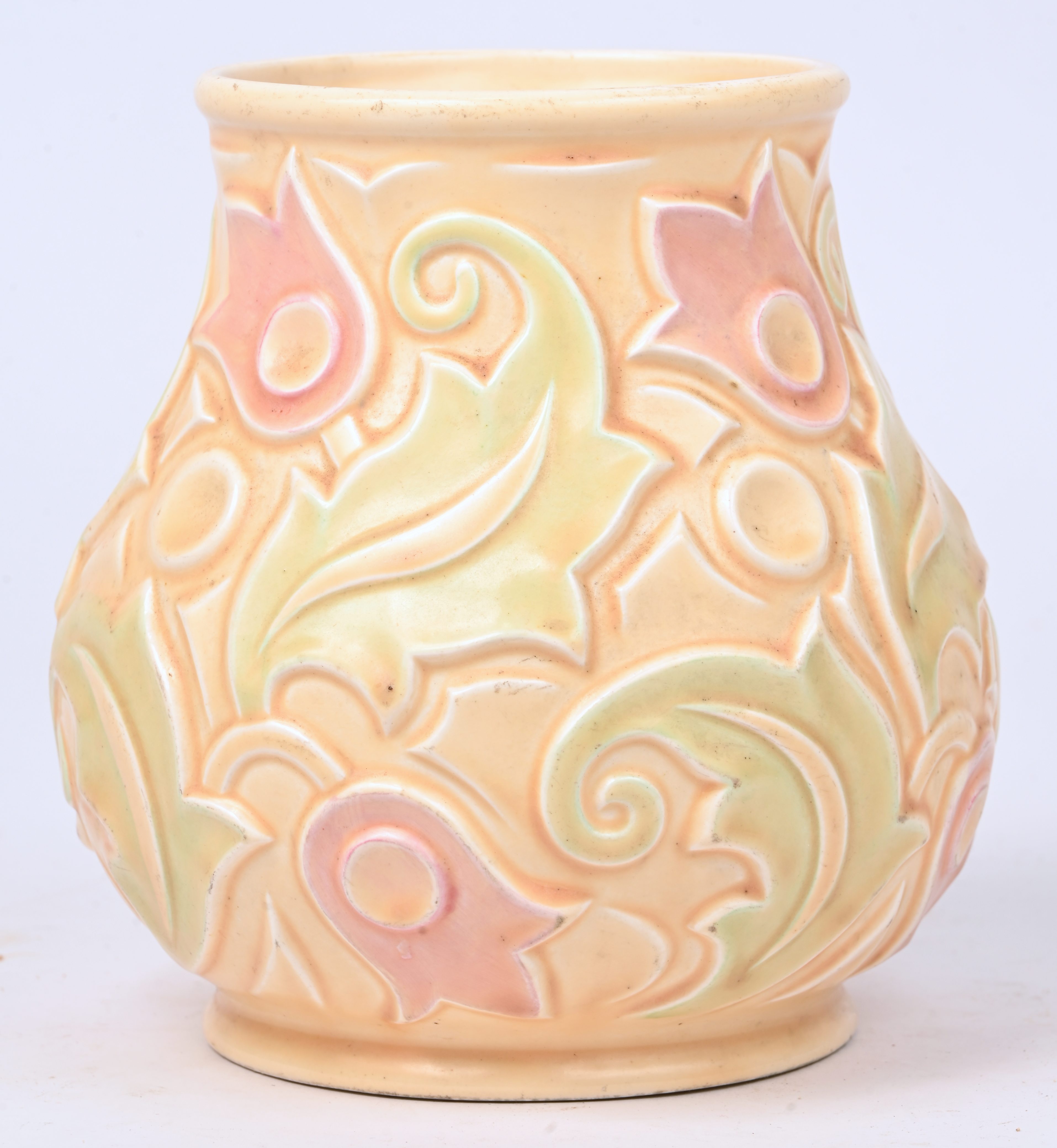 Een vintage keramische vaas, Wade Heath England, model Gothic. Circa 1950.