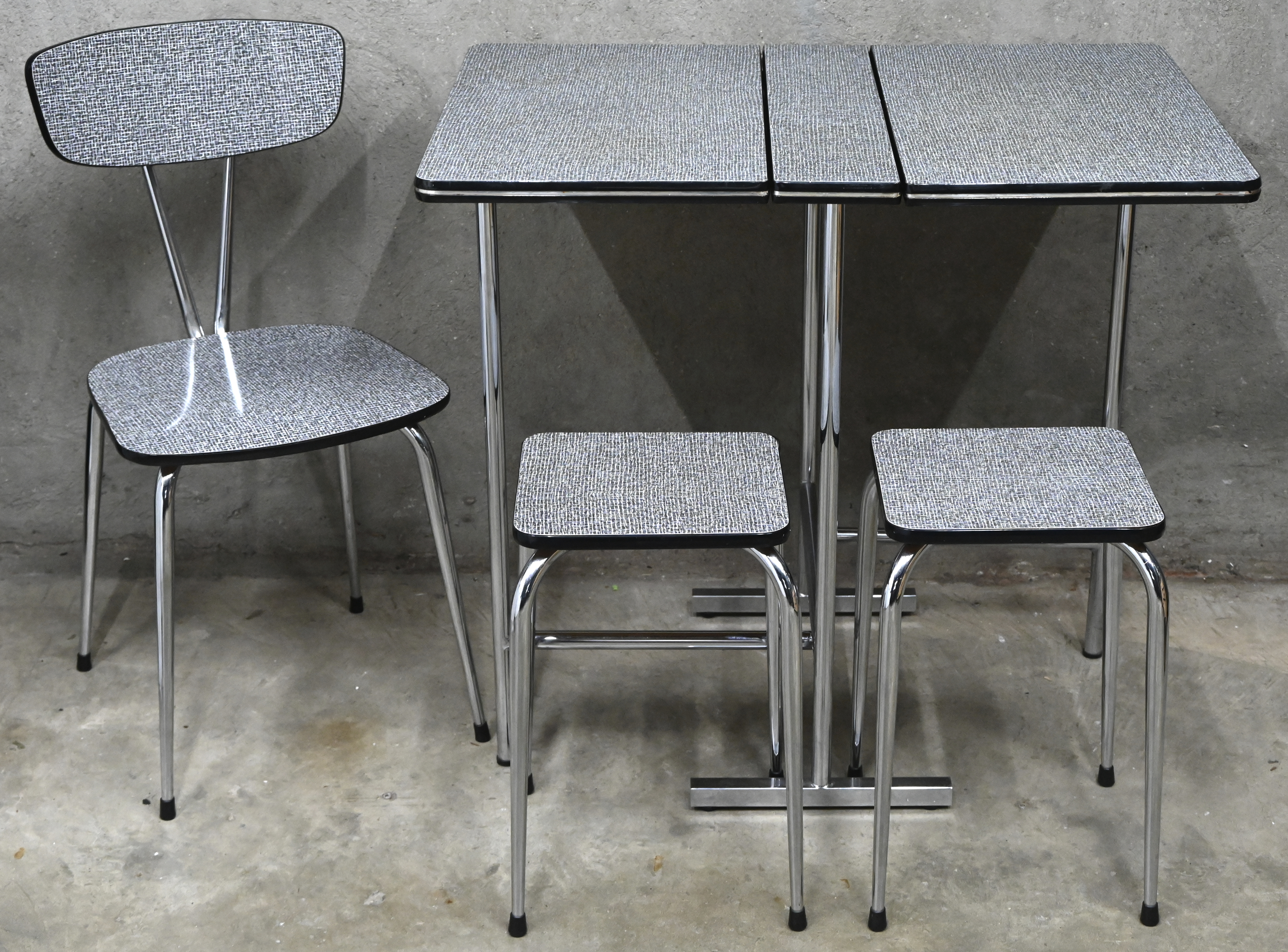 A vintage desk lamp, red and chrome metal. -