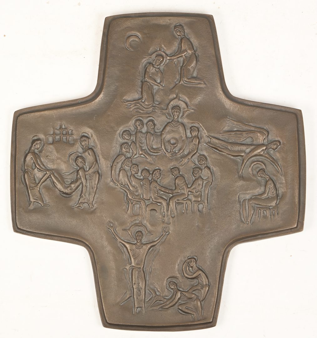 #214Een lot van twee 19e eeuwse messing kruisbeelden.