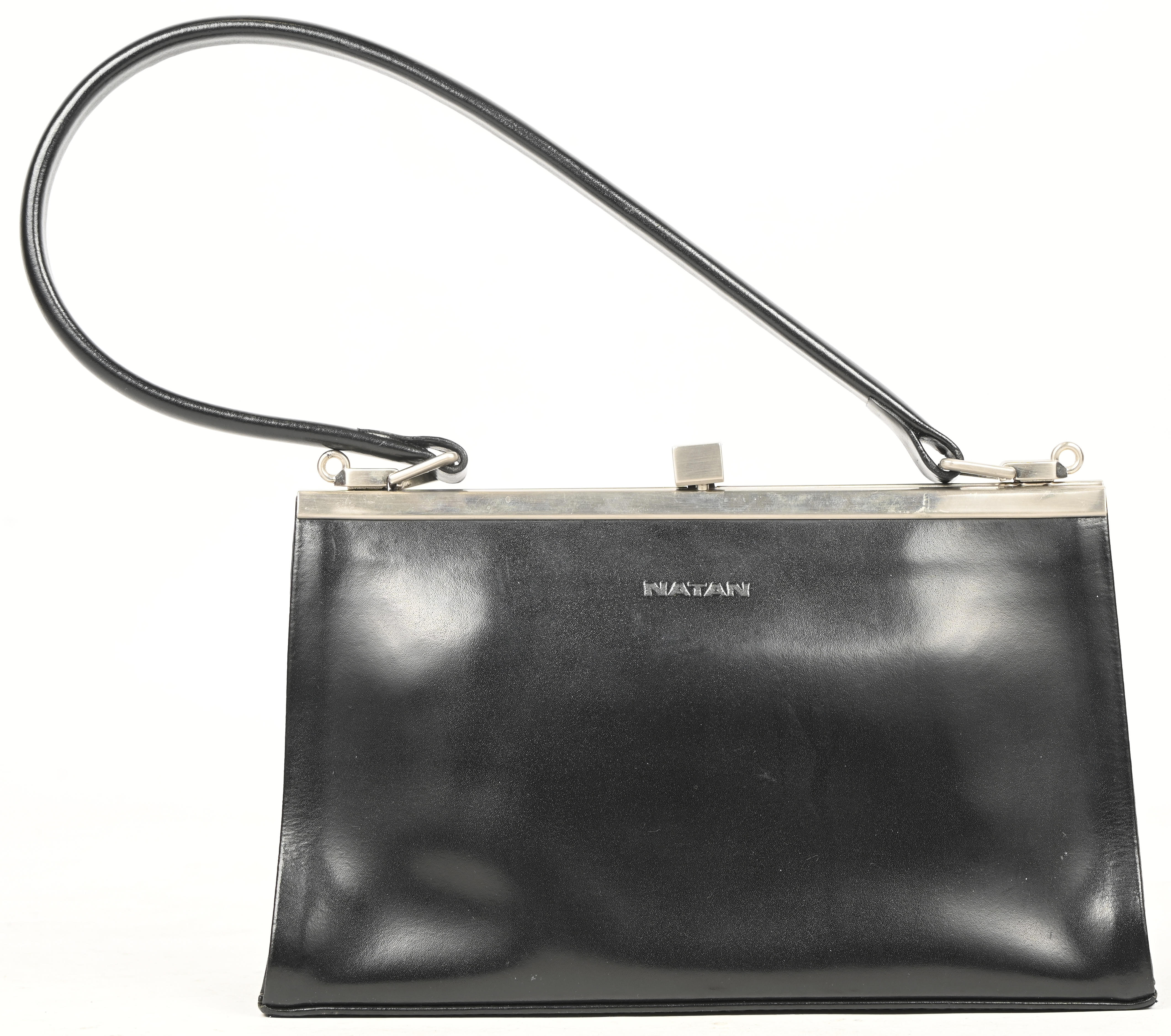 Een vintage lederen handtas, gemerkt Natan. Binnen