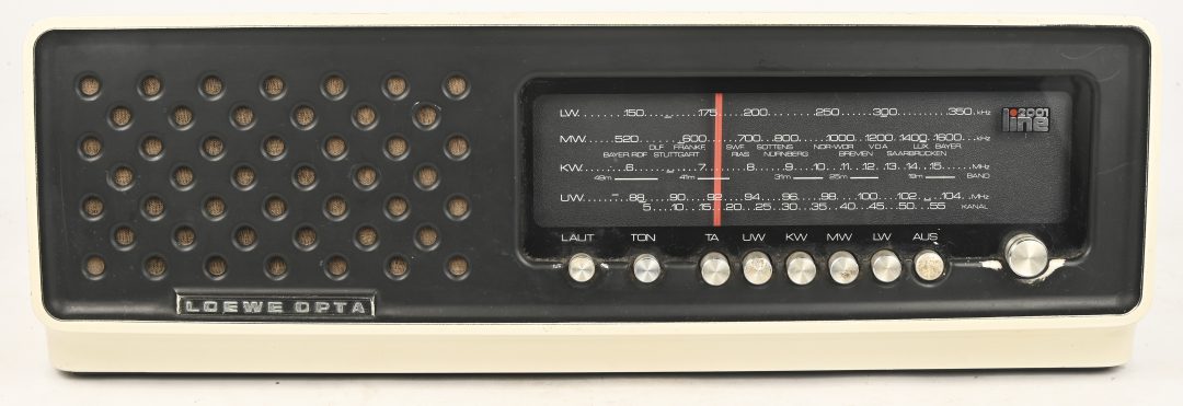 'Ikaro', a portable vintage television set by Minerva. Cable is missing.Online onlyDim. H 27, B 31 cmEstimate: € 40 / 60 -
