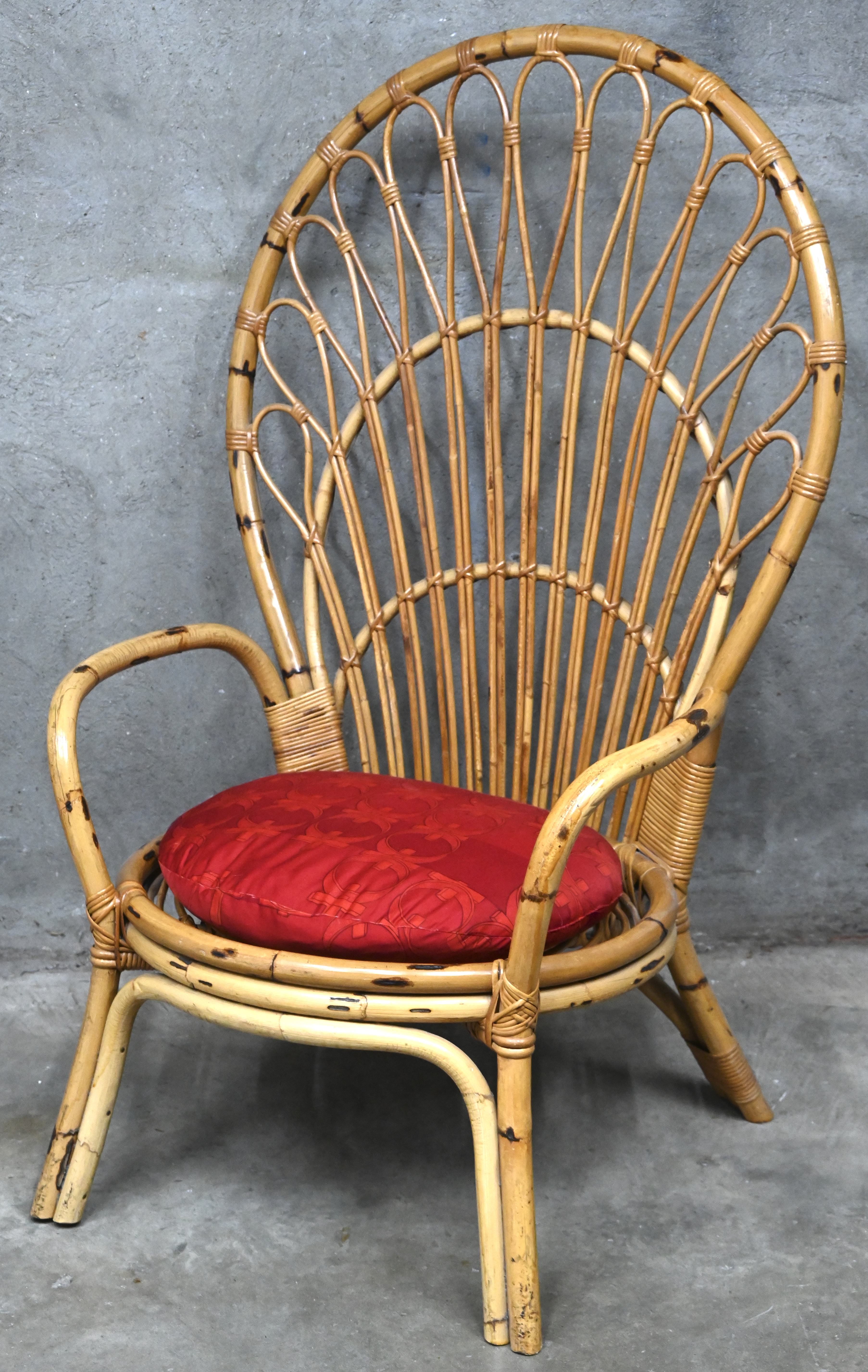 A brass chair with red velvet upholstery. Hollywood Regency style. -