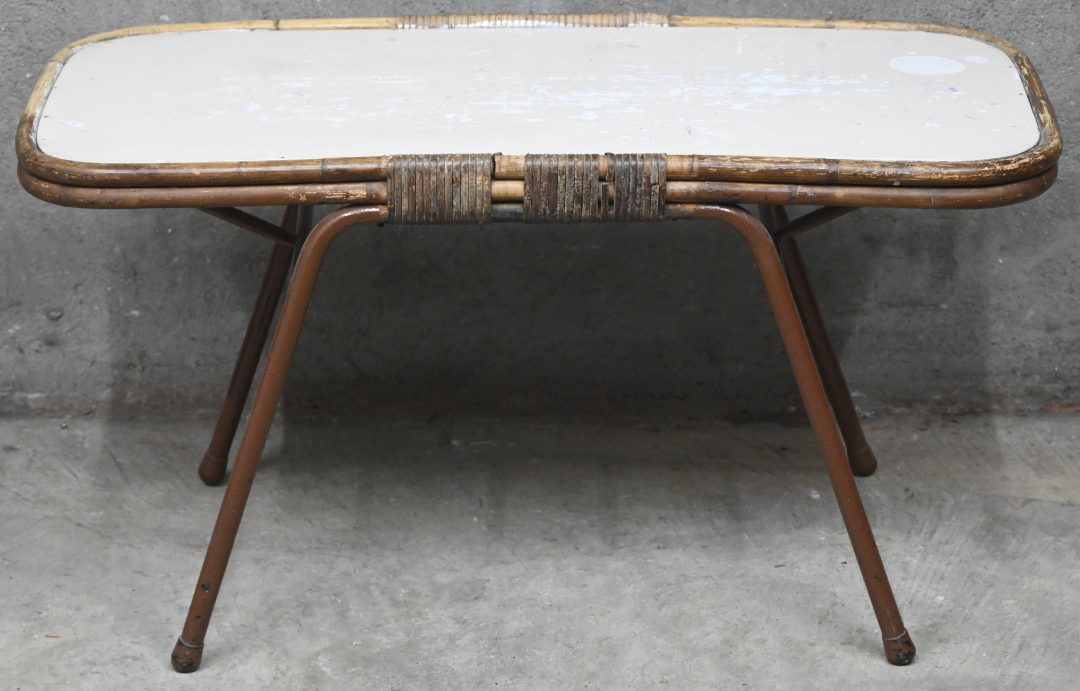 #148Een vintage salontafel met spiegelblad en gechromeerd metalen frame.