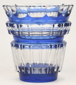 A vase made of blue and colorless VSL crystal. Signed Val St. Lambert. -
