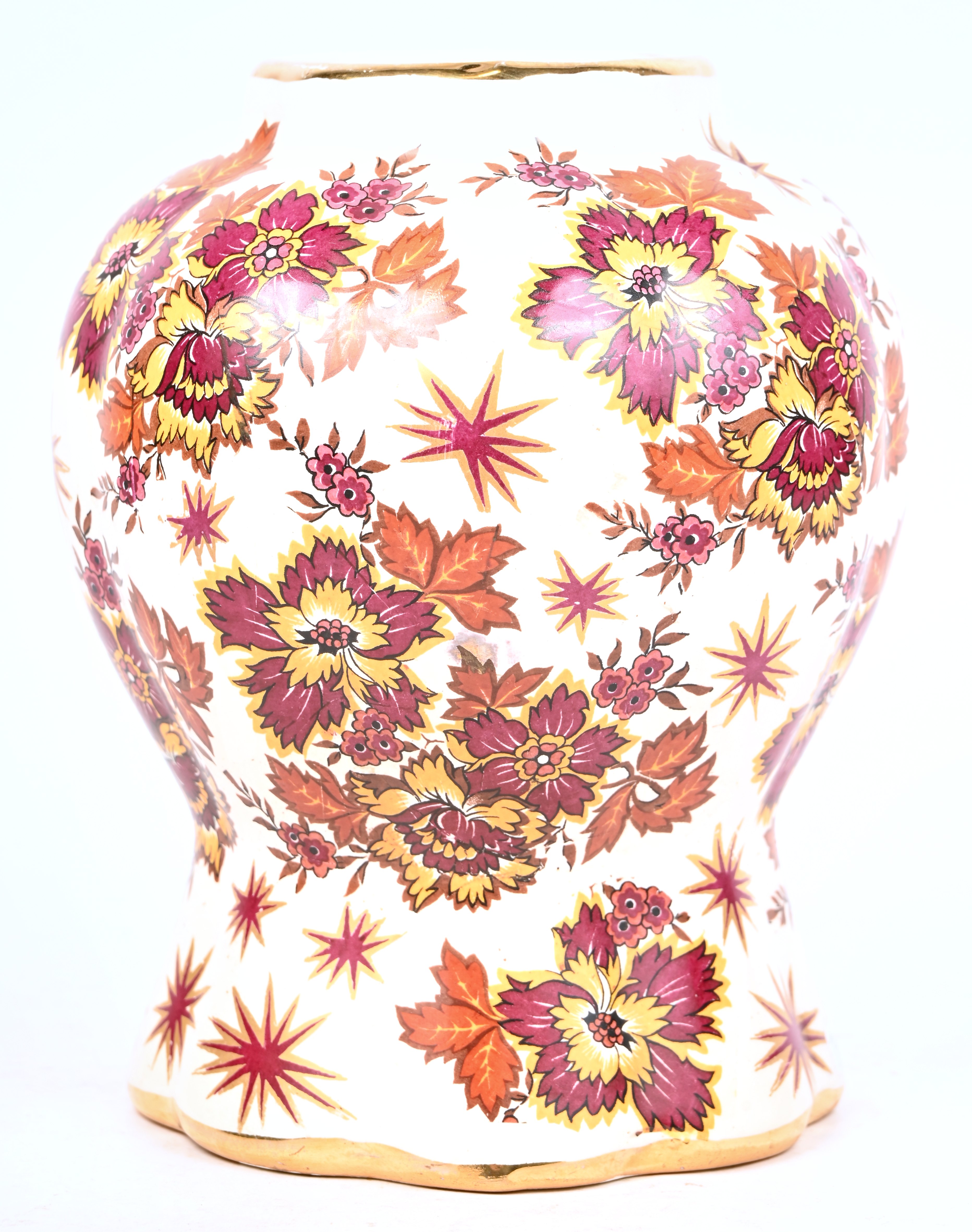 Een vintage vaas met floraal decor, gemerkt Keralux, Boch Frères, Belgium.