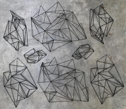 #568Acht wanddecoratie van zwart gelakt metaal.