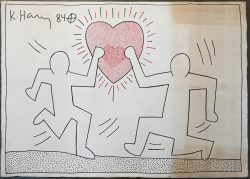 #487The Keith Haring EstateVariatie van ‘84 op “The Heart.” Litho op geschept papier. Stempel achteraan. Verkleuring aan de rechterkant.