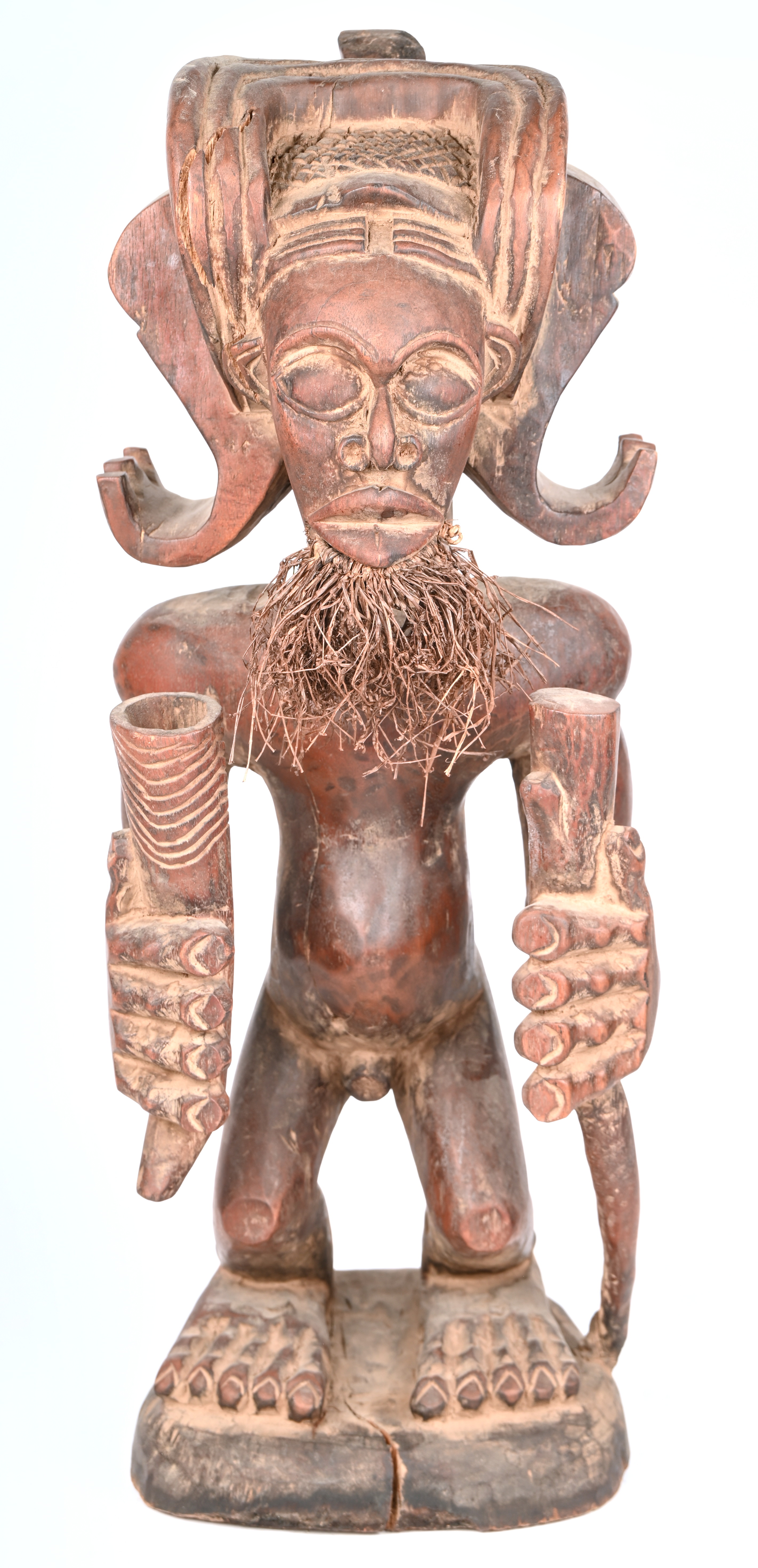 #5‘Het ganzenhoedstertje’, een gepatinneerd bronzen beeldje op een zwartmarmeren voet. Getekend H. Plé.