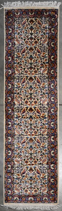 A hand-knotted Oriental runner, mixed silk and wool. -