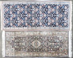 A pair of Iranian hand-knotted silk rugs. -