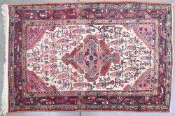 A Persian hand-knotted carpet with geometric design. -