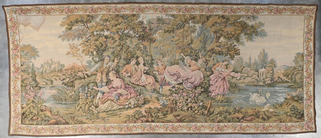 #202F. Wolters‘Stilleven met bloemen en fruit’, olieverf op doek. Naar de 19e eeuw, getekend F. Wolters. In rijkelijk versierde goudkleurige kader.