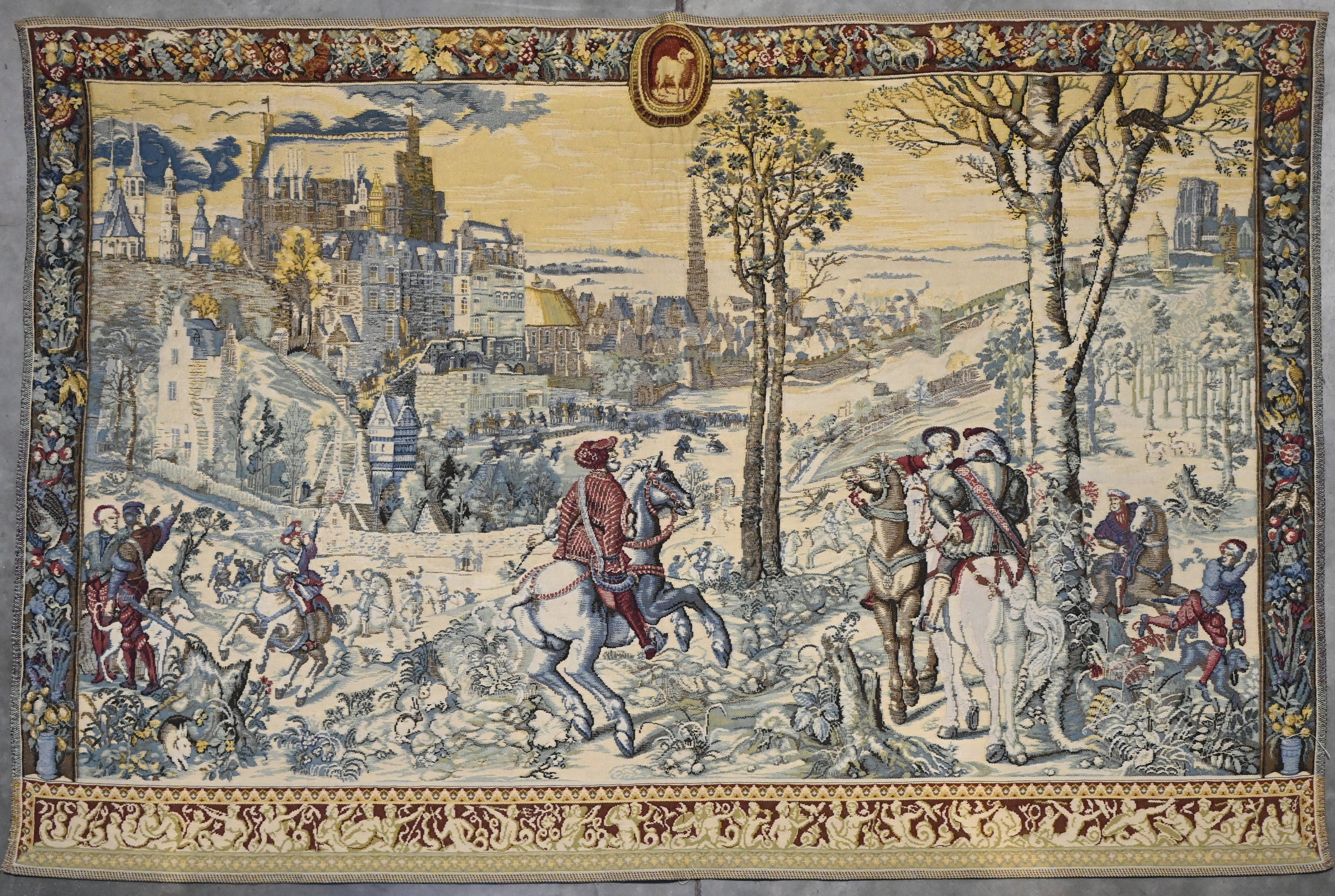#448Een wandtapijt met een middeleeuws tafereel, naar de oudheid.
