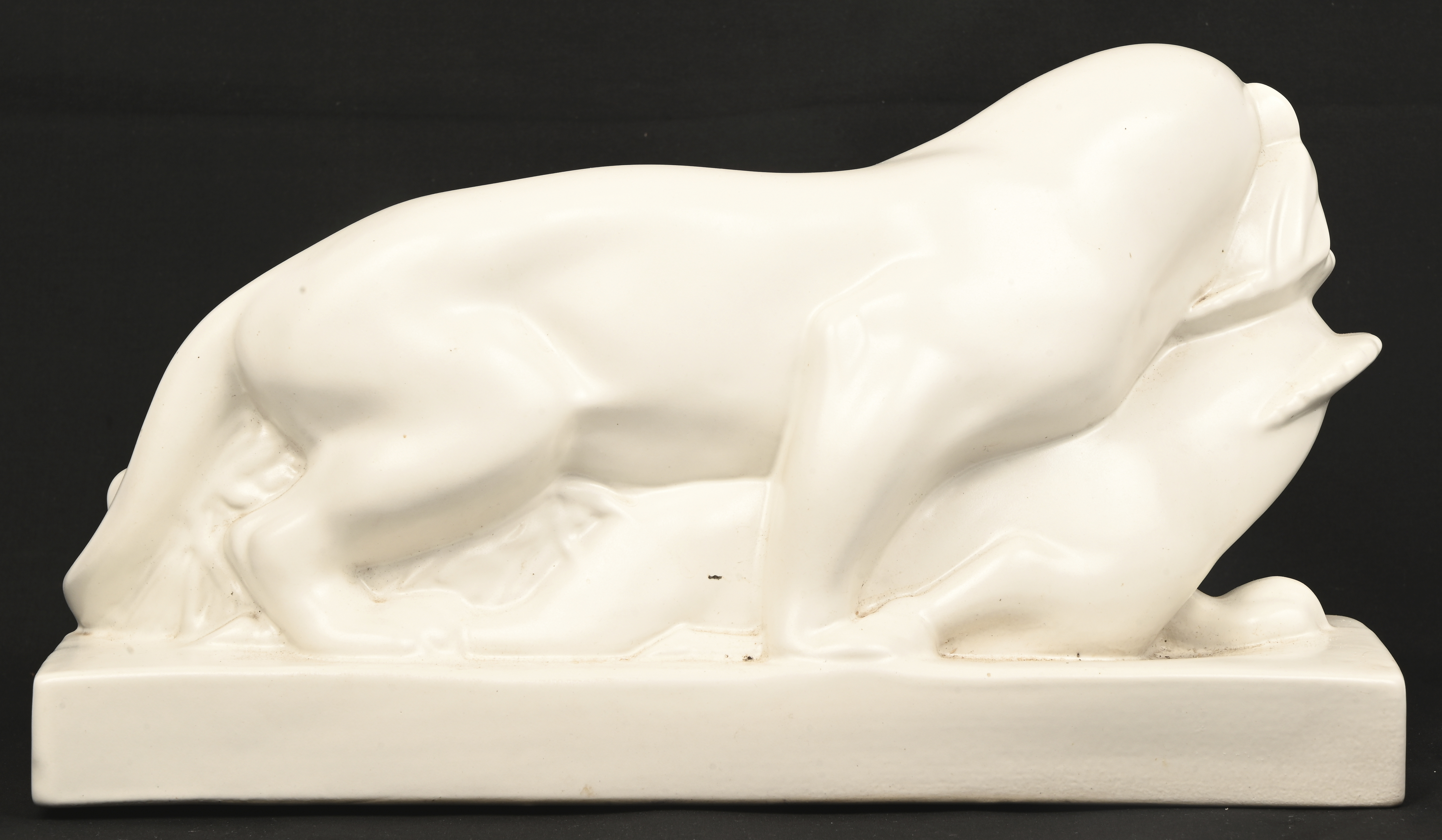 #471Carpie‘Verliefd zwerverskoppel’, en Capodimonte groep van biscuit. Getekend Carpie. Klein beetje schade aan de blaadjes.