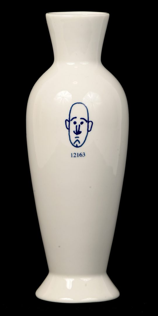 A white porcelain vase from the “Genetic Tales” series, designed by Andrea Branzi for Alessi in 2000. With original packaging.