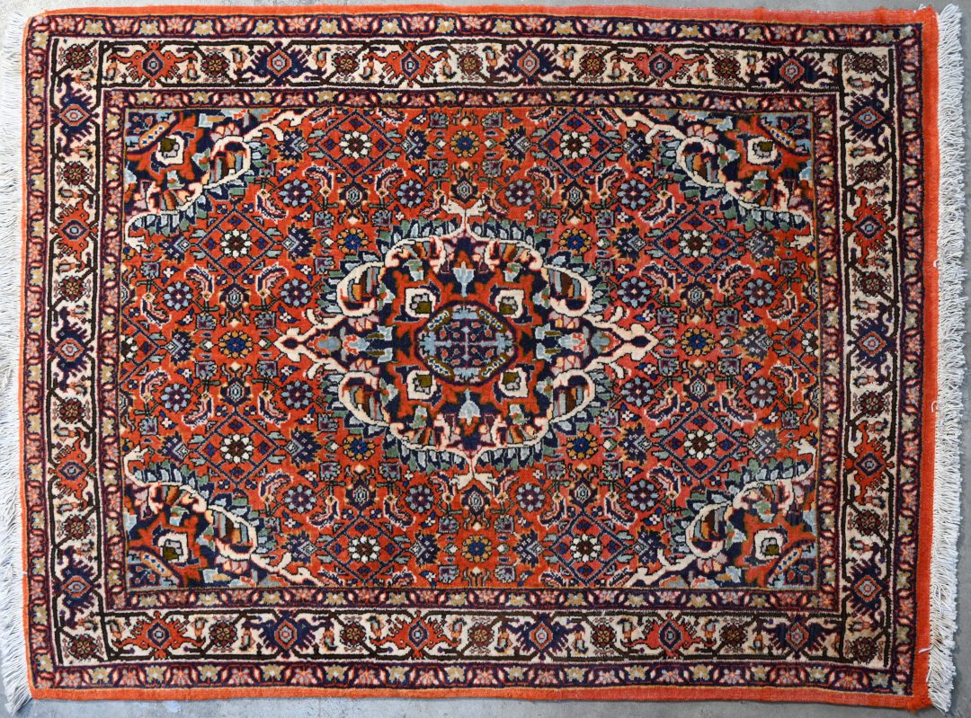 #575Twee kleine Oosterse karpetten van wol. Het éne Kasjmir het andere Mori.