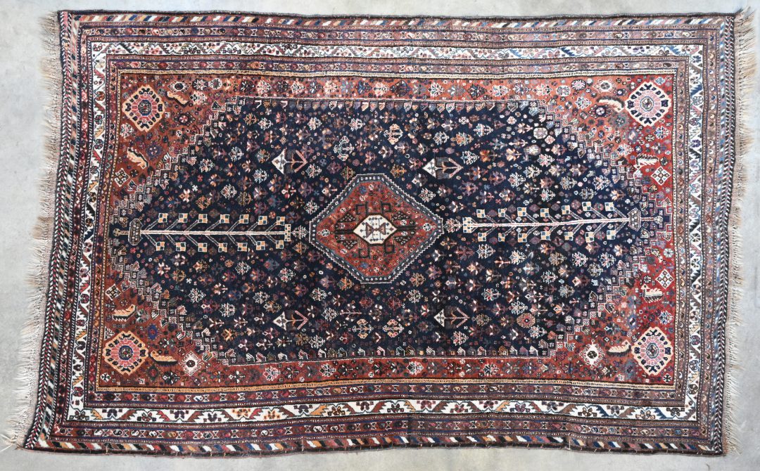 Een wollen tapijt met centraal medaillon. Handgeknoopt