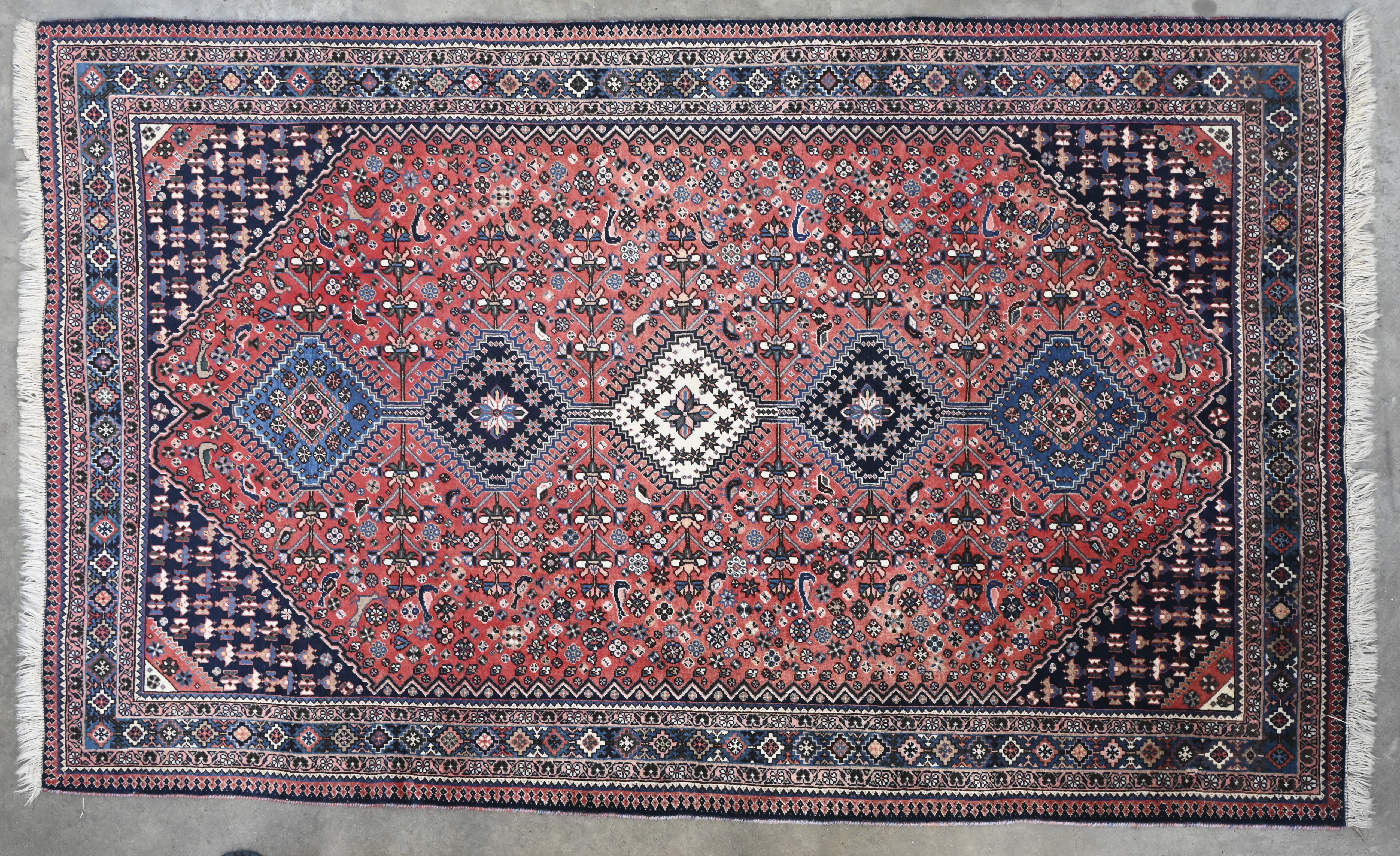 Een wollen tapijt met geometrisch motief. Handgeknoopt