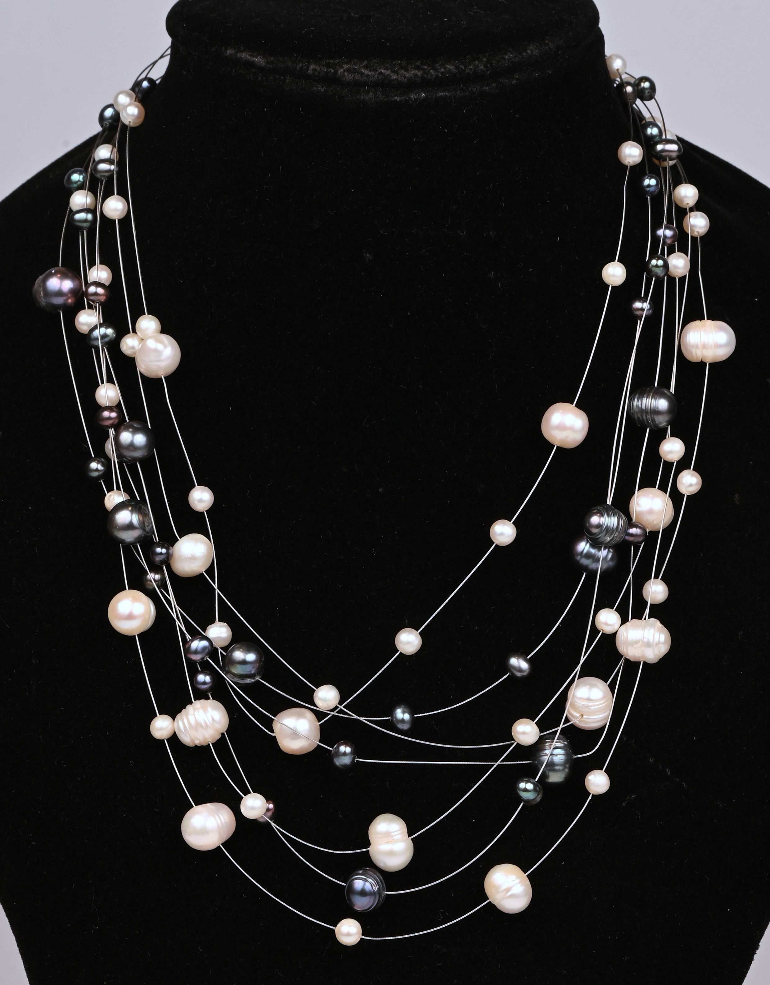 A necklace with matching bracelet set with pearls and 18kt yellow gold beads and clasp. -