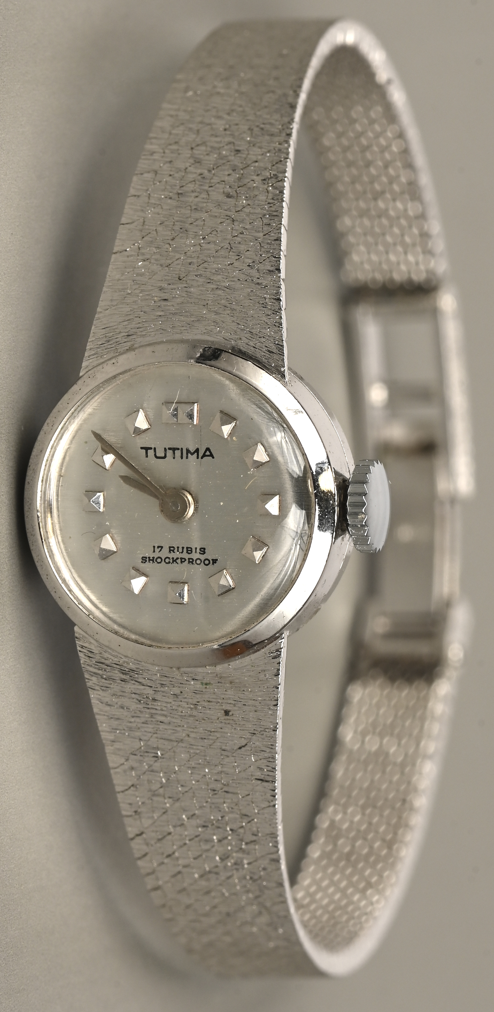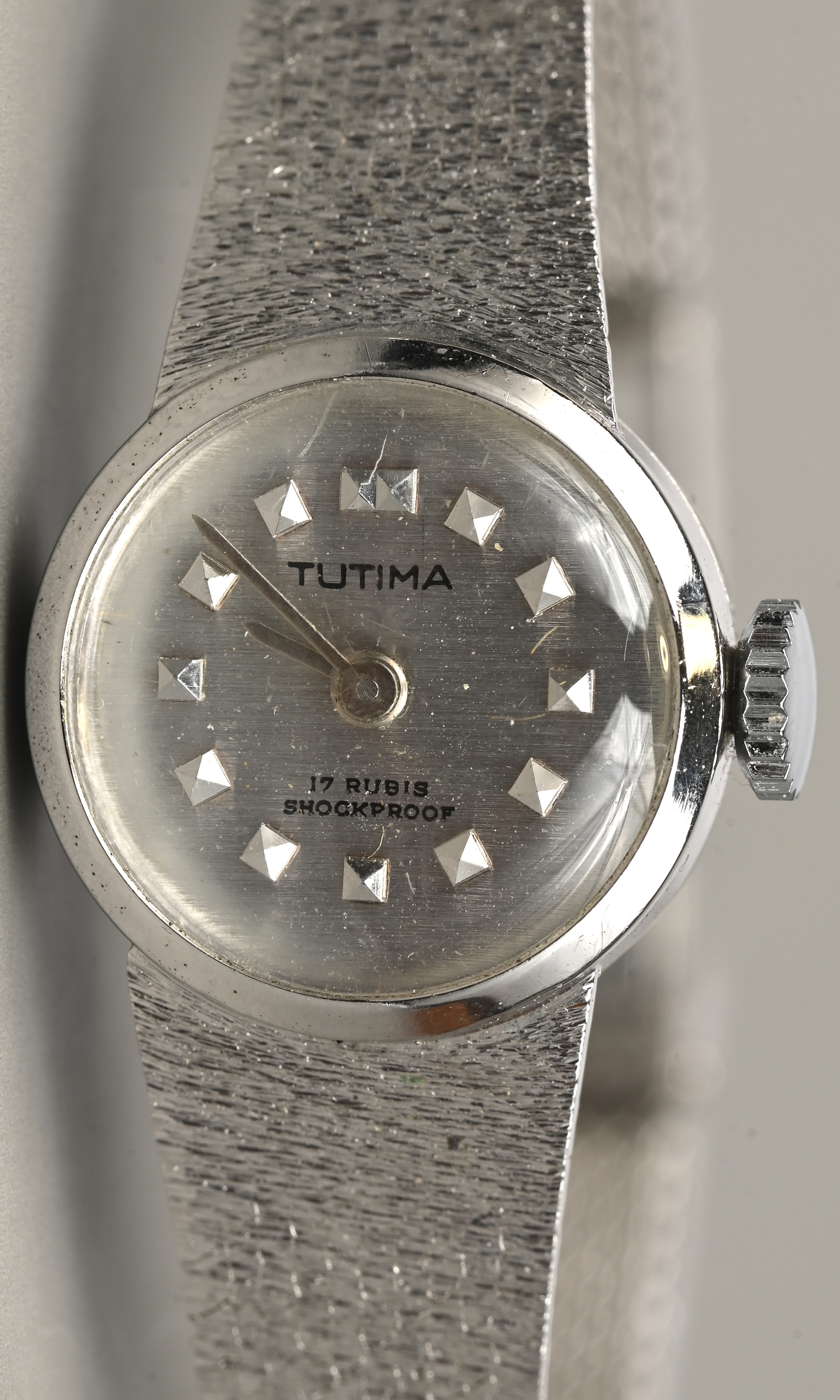 A silver ladies' watch with a silver wristband. 835‰. Working order.