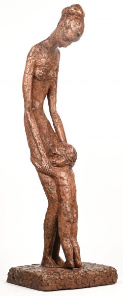 “Moeder met kind”. Een terracotta beeld. Onderaan gesigneerd. Vermoedelijke nummering “8/12”.