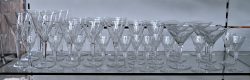 Een lot van 39 vintage kristallen glazen, 6 x 19 cm, 9 x 16 cm, 6 x 15 cm, 6 x 14 cm en 12 x 12 cm hoog.