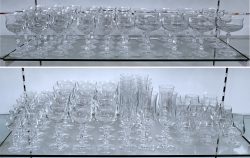 Een 84 delig kristallen glasservies, Regina, 7 x 12 glazen waarvan één van de champagnefluten met schilfer.