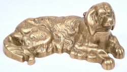 Een bronzen inktpot in de vorm van een Golder Retriever. Het inktpotje manco.