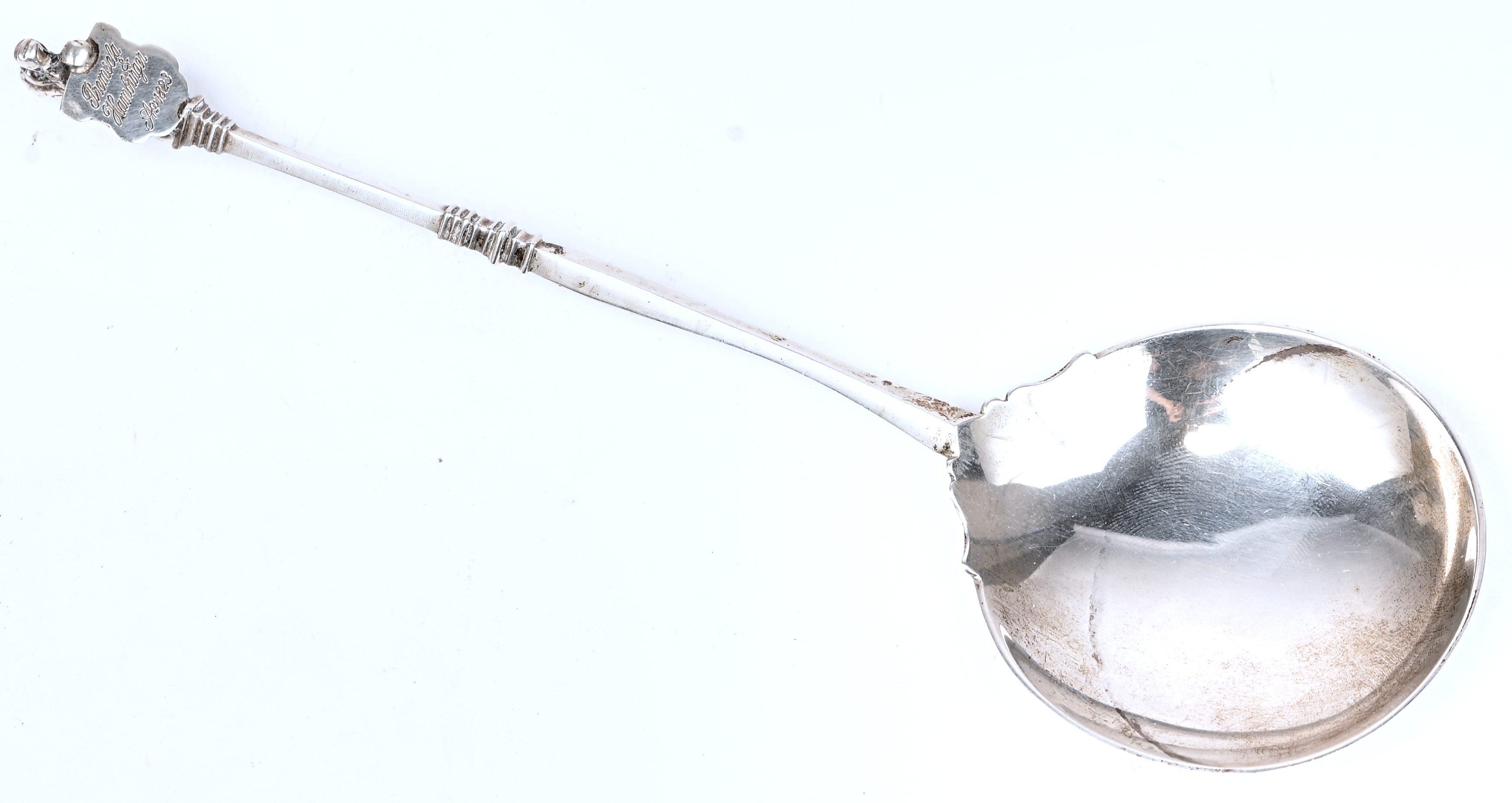 Een zilveren lepel, 2de gehalte, Nederlands gemerkt, P. Heerens & Zn. 1967-1976. 45 gram.