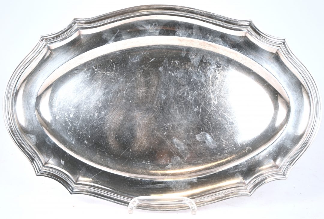 #131ChristofleEen verzilverd metalen koffie- en theestel op dienblad, gemerkt Christofle, coll. Gallia. Pin van een scharnier manco.